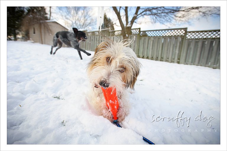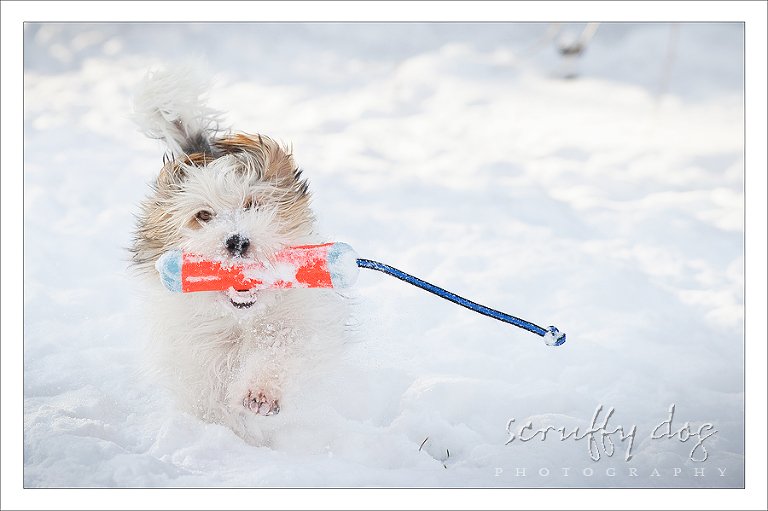 … and i can’t help but jump that cue with a little shoot i had yesterday afternoon with my own little scruffie, merrick. with the crazy schedule i’ve had lately, this was my first opportunity to shoot this little goober in the snow … unless i count those first couple of days when we brought him home.