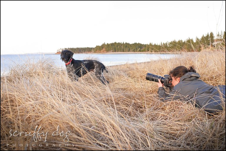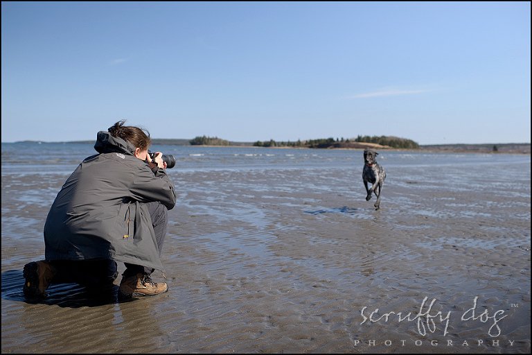 in fact, matea is so well-trained and such a consummate model, that she actually drew a bit of an audience at Hirtles, Carters, in Lunenburg, and then on Sanddollar Beach when part of the shoot entailed getting some shots of me shooting for an upcoming piece in Popular Photography Magazine. we’d put merrick back in the car as he can become a bit of a mouth-piece when he’s not the centre of attention. at the shore i’d walk matea out a couple hundred feet, quietly ask her to ‘wait’, then walk back along the shoreline and kneel into position. when everyone was ready, i’d whistle her in …